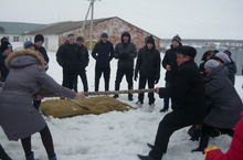 Өлкән укытучылар белән яшь укытучылар аркан тартышу ярышында көч сынашалар. Яшләрнеке яшьләрчә шул, алар җиңүче!