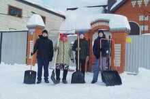 Продолжается расчистка территорий от снега. Сегодня волонтёры 7 класса расчистили снег во дворе семьи участника СВО. Так же помогли очистить территорию пожилой семьи.
