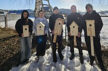 Сегодня учащиеся 9 класса (7 учеников) развесили скворечники на деревьях пришкольной территории. Домики для птиц ждут своих жильцов, и совсем скоро птицы будут радовать нас своим пением. -