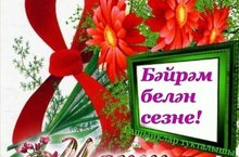 Кадерле хатын-кызлар-әниләр,әбиләр,апалар,сеңелләр! Сезне ихлас күңелдән ямьле яз бәйрәме белән котлыйбыз! Яз сулышы гаиләгезгә муллык, күңелләрегезгә сабырлык, тәннәрегезгә саулык китерсен.Ходай сезне үз рәхим-шәфкатеннән ташламасын, теләкләрегезне тормышка ашырырга ярдәм итсен, өстәлләрегез мул, аш-суларыгыз тәмле, көннәрегез ямьле булсын!