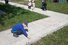Балаларны Халыкара яклау көне җитү уңаеннан, юлда төсле акбурлар белән кояш, бала, әти, әни өй, чәчәк рәсемнәре ясау. 31.05.2023
