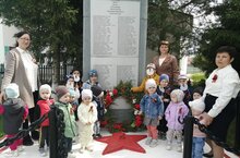 В преддверии праздника мы с ребятами отправились к памятнику-обелиску, возложили венок и поклонились солдатам погибшим в Великой Отечественной войне, пели военные песни, читали стихи.