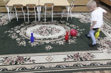 Игра"Детский тир". Учить технике прокатывания мяча, броска снизу, от плеча. 10.02.2023