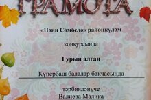 "Нәни Сөмбелә" районкуләм конкурсында беренче урын алган Вәлиева Мәликәне котлыйбыз 16.11.2021