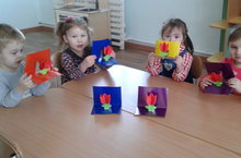 Зурлар һәм мәктәпкә әзерлек төркеме белән кисеп ябыштыру шөгылендә сыерчык оясы һәм кош рәсемнәрен кисеп ябыштырдык. Тиздән туган якларына сыерчыклар кайтып җитәрләр. Аларның кайтуына балалар белән без шулай әзерләндек. Максат: кошларга карата мәрхәмәтлелек, сакчыл караш, хезмәткә мәхәббәт тәрбияләү.