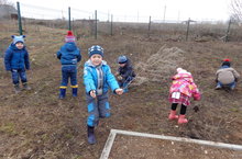 Балалар уен площадкасын чүпләрдән арындырырга булыштылар: корыган ботакларны җыйдылар, җил белән очып килгән чүпләрне чиләккә тутырдылар. Максат: балаларны хезмәт тәрбиясенә тарту, тирә-юнь мөхитне пычратмаска, табигатьне сакларга кирәклеген төшендерү.