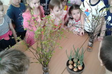 10 көн элек балалар белән сулы шешәләргә агач ботаклары, савытка суган утырткан идек. Көн саен балалар аларның үзгәрешләрен күзәтеп бардылар. Менә хәзер без нәтиҗә ясарга булдык: суган кыяклары озын булып үстеләр. Аларны турап, балаларның ашларына салып ашатабыз. Яз көне витаминнар бик кирәк. Ә агач ботаклары яфрак ярдылар, хәтта шомырт чәчәк атты. Ул бүлмәбезгә хуш ис чыгарып утыра. Менә шундый кызыклы һәм файдалы тәҗрибә.