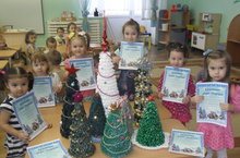Әти-әниләр конкурсларга бик теләп катнашалар. "Кышкы композиция" конкурсына да үзләренең фантазияләрен эшкә җигеп матур эшләнмәләр алып килделәр. Алар арасында кышкы пейзаж, кар бабай, чыршылар бар. Чыршыларны лентадан, салфеткадан, токмачтан, ватный дисктан, җептән бәйләп, хәтта конфетларны ябыштырып та ясаганнар. Бик матур килеп чыккан. Афәрин!