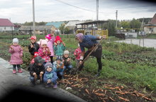 Балалар белән түтәлдән кишерләр җыйдык. Максат: балаларны күмәк хезмәткә тарту; бер-берләренә, олыларга ярдәм итәргә өйрәтү; бакчада үстергән яшелчәләрең файдасы турында әңгәмә үткәрү.