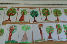 Максат:Балаларны кәгазьне ерткалау ысулы белән агач ясарга өйрәтү.Аларның иҗади күзаллауларын үстерү.