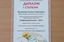 Воспитатель нашего детского сада Хусаинова Р.Р. приняла участие в Всероссийском конкурсе "Современный педагог - 2022" и заняла I место. Поздравляем!