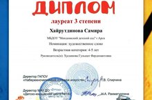 Воспитанница нашего детского сада Хайрутдинова С.З. стала лауреатом 3 степени в региональном конкурсе художественного слова, посвященном 115 - летию со дня рождения детской писательницы Агнии Барто.