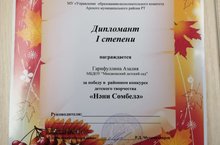 Поздравляем нашу Гафиуллину А.И. с победой, с 1 местом в районном конкурсе детского творчества "Нәни Сөмбелә". Желаем дальнейших успехов и новых побед.