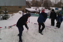 Бүген мәктәп территориясендә өмә үткәрелде. Тирә-яктагы кар таратылды, стеналар кардан арчылды.