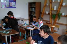 В последней части урока «построили» дом из вырезанных цветных бумаг. На каждый кирпичик дети написали те качества, которые хотели бы видеть в своём доме: теплота, милосердие, покой, доброжелательность, отзывчивость, спокойствие, понимание, любовь, красота, уют, здоровье.