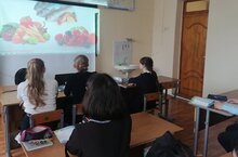4 апреля на уроке ОБЖ с учащимися 8-9 классов был проведен урок посвященный к здоровому образу жизни,правильному питанию. Закирова А.Р. рассказала детям о углеводах, жирах,белках. В конце урока ученики смотрели видеоматериал взятый из сети интернет.