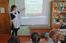 В рамках Всероссийской социальной акции "Здоровое питание школьника" ученица 9 класса провела с учащимися 1-4 классов интерактивное занятие по правильному питанию "Секреты правильного питания". Целью урока было формирование у детей базовых знаний о культуре правильного питания как одном из компонентов здорового образа жизни.