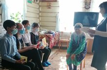 Дәрестән соң өлкән авылдашыбыз Хуҗиева Радия әби янына очрашуга бардылар. Изге күңелле бу әби балаларны ак шәлен бәйләп,елмаеп каршы алды.Укытучы Хәмидуллина З.Я. Радия апаның тормыш юлы белән таныштырып чыкты. Аннары Радия апайның хатирәләрен тыңладылар. Ул үзенең оныклары өчен куанып яшәвен әйтте. Илебездә-җиребездә тынычлык кына булсын,дип тәмамлады ул сүзен. Балалар йотлыгып тыңладылар, Бүләкләрен,күчтәнәчләрен тапшырдылар. Бу очрашу балалар күңелендә матур эз калдырды.