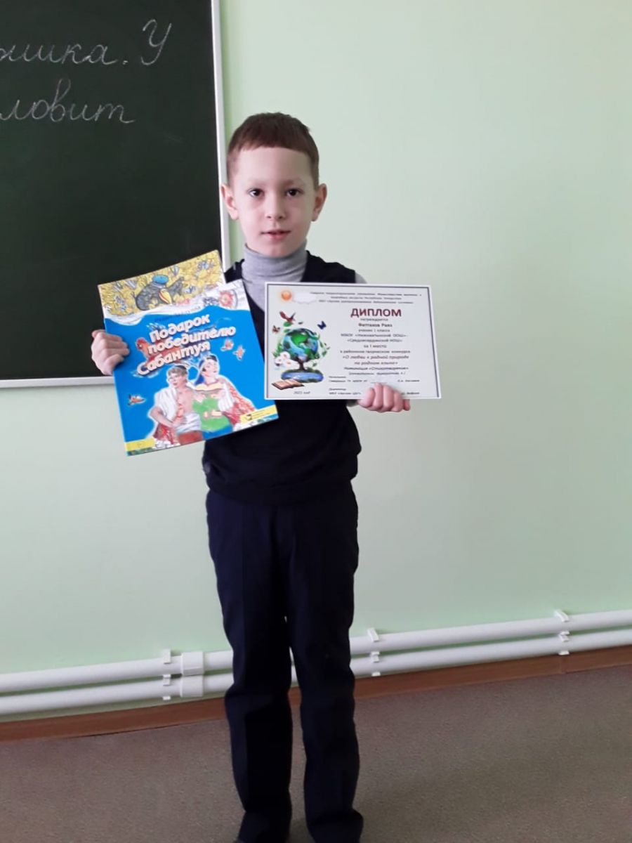 1 класс укучысы Фаттахов Раяз "О любви к родной природе на родном языке" район шигырь конкурсында катнашып, 1 нче урын алды. -