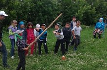 Мәктәп яны лагеренда ял итүче балалар мәдәният хезмәткәрләре үткәргән балалар Сабантуенда катнаштылар.