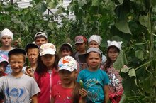 Мәктәп яны лагеренда ял итүче балалар парникка сәяхәт кылдылар. Кыяр устеру серләре белән таныштылар