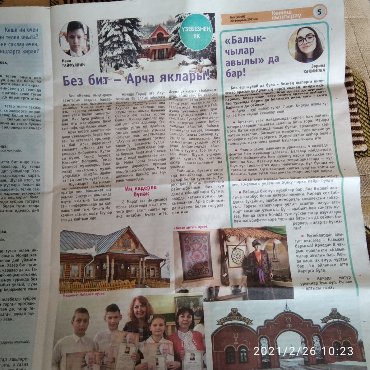 “Көмеш кыңгырау” газетасының 20 нче февраль санында 8 нче сыйныф укучысы Гайфуллин Наилнең язмасы урнаштырылган.” Без бит - Арча яклары” дип исемләнгән язмада Арча шәһәре,андагы истәлекле урыннар турында укырга мөмкин. Газета-журналларның һәр яңа санын көтеп алабыз.