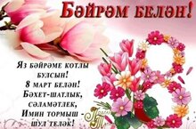 Кадерле хатын-кызлар, Халыкара хатын-кызлар көне белән! Яз урамда гына түгел, күңелләрегездә дә чәчәк атсын, ә матурлыгыгыз тирә-юньдәгеләрне сөендерсен. Сезгә бәхет, иминлек һәм уңышлар юлдаш булсын. Сезнең барлык көннәрегез дә кояшлы, якты һәм истә калырлык булсын, гаиләләрдә татулык хөкем сөрсен, тормышларыгыз матур булсын. 8 Март белән тәбрик итәбез!