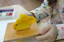 Дети подготовительной группы лепят из пластилина "Барышню"/ Мәктәпкә хәзерлек төркеме балалары пластилиннан "Барышня" әвәлиләр.