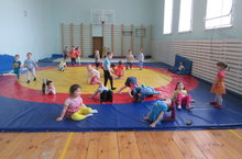Икенче кечкенәләр һәм уртнчылар төркеме физик культура залында күнегүләр эшлиләр. Тәрбиячеләре Рилә Рәисовна аларны сәламәт яшәү рәвешенә өйрәтә. Сәламәтлекнең кеше өчен иң мөһим нәрсә булуын балаларга гел төшендереп тора.