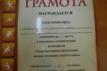 Профсоюз оештырган спорт ярышында шашка буенча 2 урын яулаганы өчен тәрбияче Хазиева Лилия Фаритовнаны котлыйбыз. Аңа авыр һәм катлаулы хезмәтендә уңышлар телибез