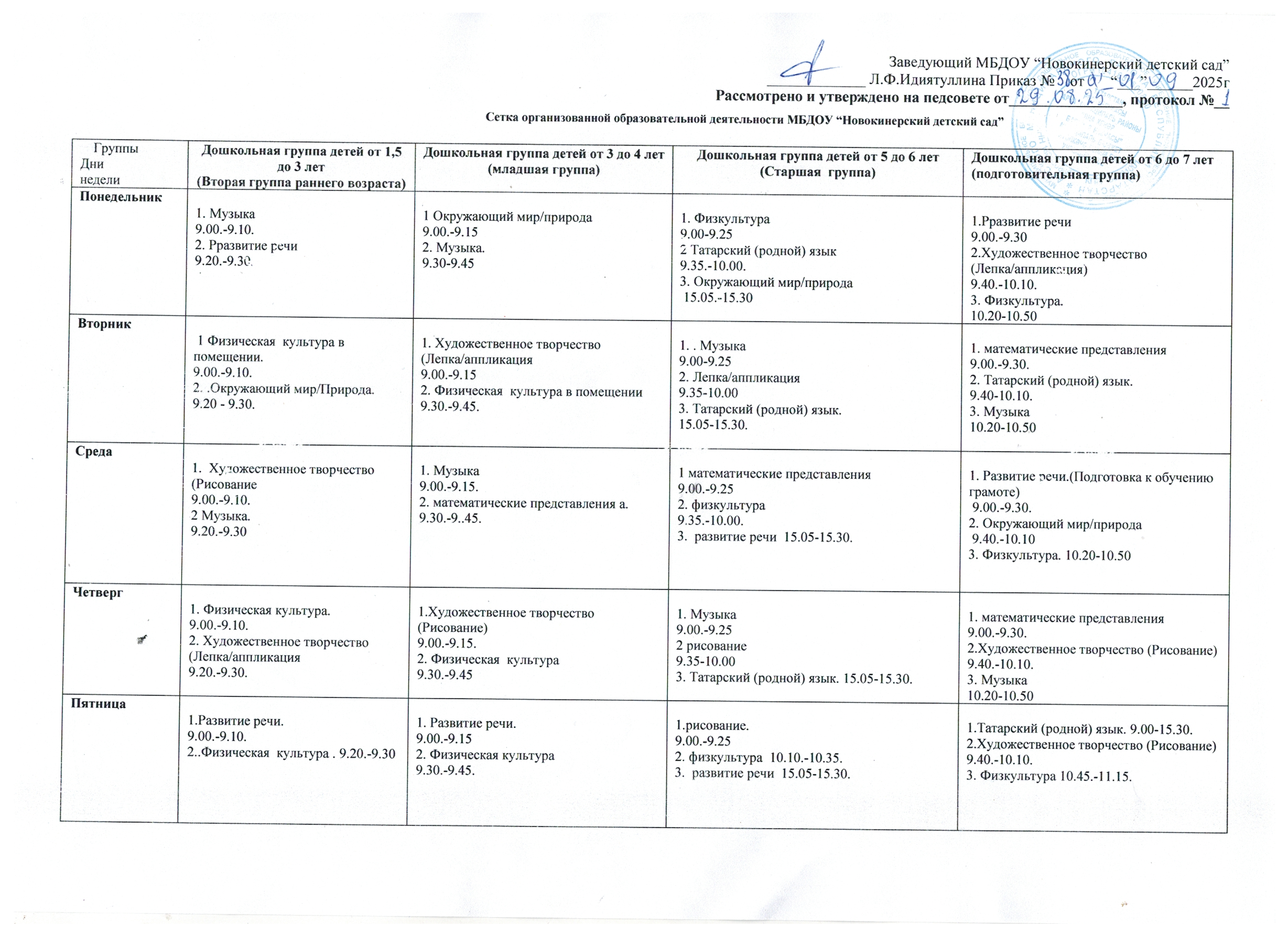 Расписание занятий на 2025-2026 учебный год