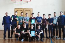 Мәктәпнең гомуми линейкасында хоккей ярышында җиңү яулаган егетләрне котладылар.