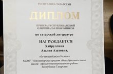Татар әдәбиятыннан республика олимпиадасында катнашып,Яңа Кенәр урта мәктәбенең 9Б класс укучысы Хайруллина А. призер булды.Азалияны һәм татар теле укытучысы Нигматуллина Л.С. чын күңелдән котлыйбыз,аларга киләчәктә уңышлар телибез.