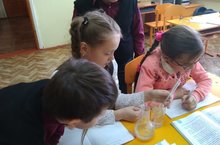 Кзыл-Яр башлангыч мәктәбендә әйләнә-тирә дөнья дәресендә тәҗрибәләр эшлиләр.