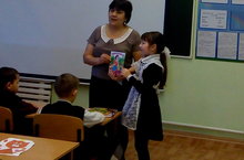 Мәктәбебез китапханәчесе Садикова Р.Р. башлангыч укучылар арасында иң күп китап укучыларыбызны бүләкләп узды. Аларга ул киләчәктәдә китап белән "дус" булырга ,китапхәнәгә йөрергә, китап белем чишмәсе икәнлеген әйтеп узды.