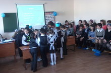 Бәйрәмгә беренче классларның әти-әниләре килгән иде.Класс җитәкчеләре Хафизова Г.Н. белән укучылар төрле сорауларга җавап бирделәр.,әти-әниләргә үзләренең белемнәрен, җыр-биюгә осталыкларын күрсәттеләр.Укучылар әти-әниләренә киләчәктә тырышып укырга,"2"ле алмаска,тәртипле булырга сүз бирделәр.Бәйрәм бик күңелле үтте.