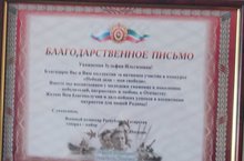 Мәктәп директоры З.И.Хайруллина Татарстан Республикасының хәрби комиссары генерал-майор С.Погодинның Рәхмәт хаты белән бүләкләнде.