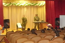 В МБОУ "Новокинерская СОШ" состоялся концерт ансамбля "Зеленые береты". Творчество ансамбля направлено на воспитание у молодежи патриотизма, любви к Родине и уважения к воинской службе, воинскому долгу. На средства, собранные от проведения концертов, коллектив устанавливает памятные знаки и мемориальные доски, осуществляет поисковую работу. В репертуаре башкирского трио песни о войне, начиная с гражданской и заканчивая нашими днями. Перед взором юных зрителей в импровизированных сценках пронеслись фрагменты славных исторических моментов нашего великого прошлого. Песни были сполнены от души, от всего сердца.