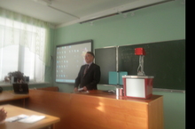 7.12.2012. Самигуллин Таһир Фида улы , югары категорияле физика укытучысы ,11 нче Б сыйныфында "Яктылык дифракциясе" тема буенча ачык дәрес үткәрде.