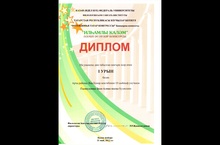 Казан (Идел буе) федераль университеты филология ёщм сәнгать институты Татарстан Республикасы язучылар берлеге "Бөтендөнья татар конгрессы" Башкарма комитеты "Илһамлы каләм" әдәби әсәрләр конкурсы дипломы Иң уңышлы дип табылган шигъри әсәр өчен 1 урын белән Арча районы Яңа Кенәр мәктәбенең 10 нчы сыйныф укучысы Галиуллина Зилә алмаз кызы бүләкләнә.