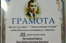 Районда үткәрелгән "Җәлил укулары" конкурсында безнең Ногманов Райнур 3 урынны алды. Котлыйбыз сине, Райнур, уңышлар сиңа! 26.11.2020