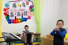 Ко дню музыки советник директора по воспитанию Шакирова И.М. совместно с учителем музыки организовали пространственную среду, а именно: портретную выставку великих отечественных композиторов, фотозону "Вместе с музыкой" из музыкальных инструментов. Ученики с удовольствием фотографировались в фотозоне, представляя себя в роли "крутых" музыкантов.