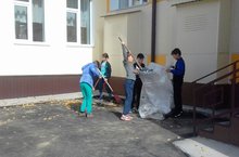 Бүген мәктәптә күмәк өмә оештырылды. Укучылар мәктәп территориясен чүпләрдән, яфраклардан арындырдылар,агач кәүсәләрен агарттылар, чәчәклекне тәртипкә китерделәр.