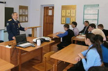 Для учащихся 9-11 классов был проведен Урок мужества с Майором в Запасе Козловом Ю.П. (представитель из Совета ветеранов Арского муниципального района). Цель данного мероприятия: сформировать представление о мужестве, долге, чести, ответственности, нравственности, понимание того, что без патриотизма невозможно привести Россию к возрождению; сохранение и преумножение лучших традиций российской истории; работа с подрастающим поколением по патриотическому воспитанию. Юрий Петрович рассказал ребятам о себе, как он служил в армии, дал информацию о военных училищах. У ребят была возможность задать ветерану интересующие их вопросы. Во второй половине нашей встречи ребята рассказали о Параде Памяти в г.Самара, посвященный памяти военного парада в г. Куйбышев 7 ноября 1941 года, об историческом значении Парада Памяти и представили историческую справку о тех временах. Ученики так же были информированы с Концепцией проведения Парада Памяти, посвященного военному параду в г. Куйбышев 7 ноября 1941 года в 7 ноября 2014 года. Сообщили о тематике парада в 2014 году «Дружба Народов». Тематика выбрана в продолжении темы присоединения Крыма и Севастополя к Российской Федерации. В конце урока посмотрели документальный фильм о параде 1941 года, о суровых буднях запасной столицы. Считаем, что мы достигли поставленной цели, так как ученики были заинтересованы данной темой, и думаем, что у них сформировалось представление о мужестве, долге к своей Родине.