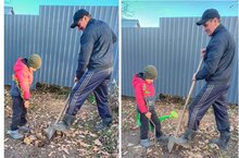 Хабибуллин Әмирхан үзенең әтисе белән "Урманны саклыйк" акциясендә катнаша. 21.10.2024