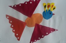 Аппликация "Птица счастья".Цель: Освоение техники симметричного, силуэтного вырезывания, использование разнообразные способы прикрепления материала на фон, для получения объемной аппликации. Задачи: Продолжать знакомить детей с объемной аппликацией. Показать способ вырезывания силуэта птицы из бумаги, сложенной пополам. Учить детей соотносить реальные и сказочные образы, на основе полученных впечатлений предложить создать в аппликации образ птицы, передавая ее необычность и красоту, используя элементы декоративного оформления. Развивать зрительный контроль действия рук. Дать возможность каждому из детей проявить самостоятельность в выборе способов украшения работы и творческие способности. Воспитывать уважительное и доброжелательное отношение к традициям и обычаям своего народа, к окружающему миру. Материал и оборудование: Выставка работ на тему “Птицы Якутии”, аудиозапись “Голоса птиц”, “Звуки леса”, “Пение стерха” (импровизаци на хомусе) презентация “Стерх - Птица счастья”, проектор, экран, цветной картон, полоски белой, красной и черной бумаги, клей, клеевая кисть, ножницы, салфетки и др. 19.04.2017