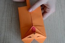 Занятие по конструированию из бумаги в подготовительной группе «Рыжая лисичка». Программное содержание: Учить детей мастерить поделки в технике оригами, используя поэтапные схемы изготовления животного (лисицу); учить четко выполнять инструкции педагога; Закрепить умение складывать квадрат в разных направлениях; закреплять навыки декоративного украшения готовой фигурки; умение правильно размещать изготовленную фигуру на панно; Заинтересовать детей изготовлением поделок из бумаги в технике оригами; помочь каждому ребенку добиваться желаемого результата и доводить начатое дело до конца; Развивать память, внимание, логическое внимание, мелкую моторику рук, способствовать развитию конструктивных и творческих способностей ребенка; Воспитывать усидчивость, самостоятельность, аккуратность, умение работать в коллективе. Материал для занятия: демонстрационный: Царь-картон (игрушка-самоделка), панно леса с различными видами птиц, зверей, рыб, деревьев, выполненных в технике оригами, схемы поэтапного складывания животного (лисицы); раздаточный: на каждого ребенкабумажные квадраты оранжевого цвета (10*10) –для изготовления туловища животных, (8*8) –для головы животных, кусочки черной, белой бумаги для глаз, носа, лап; ножницы, клей, клеенки, салфетки. 13.02.2016