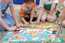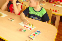 Занятия по математике «Город сказЦель: Закрепить счет от 1 до 5, обратный счёт, знание цифр; умение соотносить количество предметов с числом. Упражнять в решении задач на уменьшение числа на единицу. Закрепить знание геометрических фигур и тел, умение конструировать. Учить делить целое на части. Развивать логическое мышление, внимание, умение рассуждать. Материал и оборудование: Иллюстрации для задач и заданий. Яблоко. Нож. План зала с Городом сказок и его окрестностями. Зал разделен на зоны: болото - ткань зелённого цвета, на ней 5 бумажных кувшинок, 4 игрушечных лягушки (одна из них со стрелой в лапе). Под тканью спрятана кукла Царевна. Рядом с озером разложены карточки с цифрами от 1 до 5. Рядом расставлены искусственные ёлки; - теремок (ширма для кукольного театра), за ней жители теремка (мышка, лягушка, заяц, лиса, волк, медведь); чудесный мешочек с геометрическими телами, подносы с наборами геометрических фигур (наборы по количеству детей). Зоны соединены переходами в виде кочек, по которым нужно прыгать; ворота, под которыми нужно пролезать . 17.02.2016