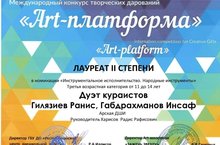Котлыйбыз! 12.12.2020 5 класс укучылары, курайчылар дуэты Гыйлаҗиев Ранис, Габдрахманов Инсаф "Art - платформа" халыкара конкурсында ll дəрəҗə лауреат исеменə лаек булдылар. Җитәкчеләре Харисов Р.Р. Котлыйбыз һәм алдагы бәйгеләрдә уңышлар телибез!