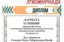 Котлыйбыз! 12.12.2020 "Этномириада" Халыкара конкурс- фестивалендə 5 класс укучылары - курайчылар дуэты Гыйлаҗиев Ранис, Габдрахманов Инсаф l дəрəҗə лауреат исеменə лаек булдылар. Җитәкчеләре Харисов Р.Р. Котлыйбыз һәм алдагы бәйгеләрдә уңышлар телибез!